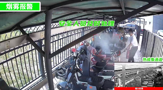 方案支持部署热成像火点识别摄像机,可对停放区域进行全天候实时监测,精准捕捉温度异常、冒烟起火等火灾前兆。一旦触发报警阈值,系统将立即启动三重预警:现场响起语音播报、闪烁白光警示,并联动报警器发出警报;监控平台端的电子地图快速定位报警点位,同时弹窗显示现场实时视频,方便工作人员第一时间掌握情况;管理人员的移动 APP 也会同步推送报警信息,确保通知无死角。不仅如此,工作人员还可顺利获得远程操作,即时启动干粉灭火装置或水喷淋系统,以秒级响应速度快速控制火情蔓延,将火灾损失降至最低。